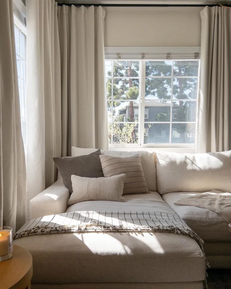 Personally, I love flowing linen drapes that hang slightly too long and pool on the floor for a boho feel. I even swap the drapes in my bedroom so that the sunlight starts to wake me up, kicking that circadian rhythm into action. Because, let me tell you, I need all the help I can get in the morning.
